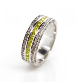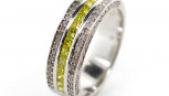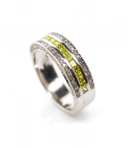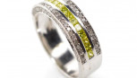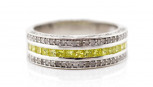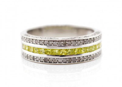 with a three row channel setting, rubbed marks. Approx weight 4.8 grams, ring size P. Test as 10ct -