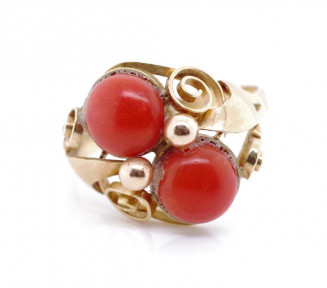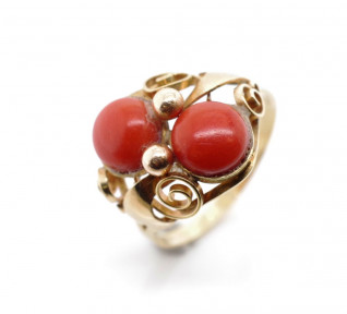 Lot Description:14ct yellow gold and coral ring