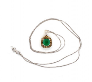 Lot Description:Emerald and diamond set 10ct gold pendant