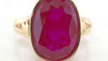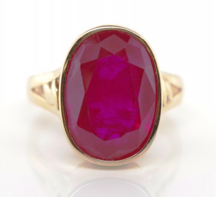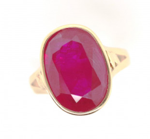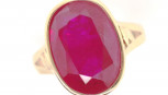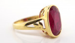 Lot Description:Treated oval cut ruby set 18ct yellow gold ring
