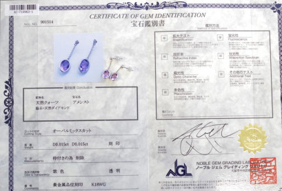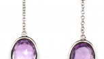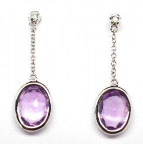 Lot Description:Amethyst and 18ct white gold hanging earrings