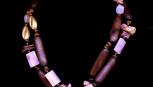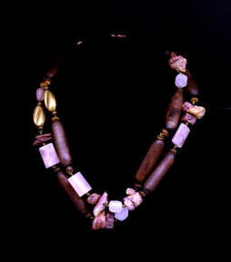 also with turned wooden spindle and gilt metal beads. Approx length 100cm -