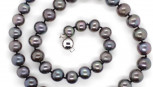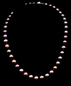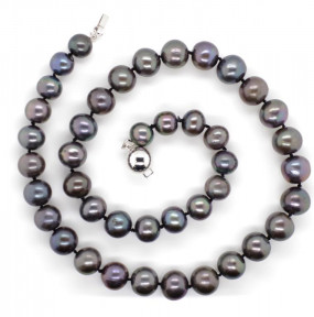 on a 9ct white gold clasp. Approx 9mm-11mm showing some peacock colouration, length 47cm -