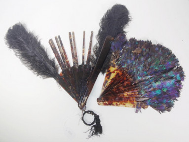 Lot #488 - Two antique tortoiseshell fans with feathers