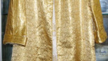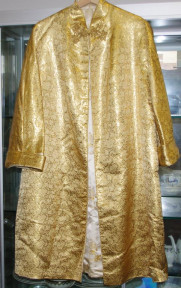 one side gold floral decorated the other cream and floral decorated, with Chinese embroidered button opening -