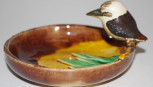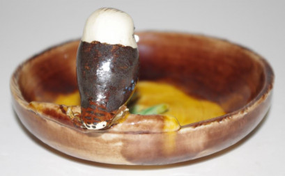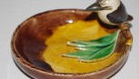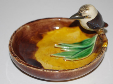 Lot Description:Grace Seccombe perched Kookaburra & gum leaf dish