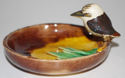 Lot #1010 - Grace Seccombe perched Kookaburra & gum leaf dish