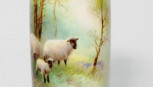 decorated with sheep in pasture, pierced rim, gilt highlights, 4 scroll feet, marked to base and # G42, (height 14cm approx). -