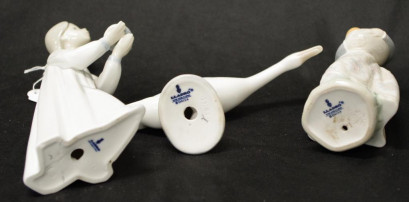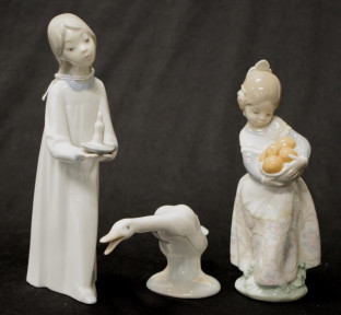 including Young Girl with Oranges, (height 17cm approx); Girl with Candle, (eight 20cm approx); and Goose figure, (height 8cm approx). -