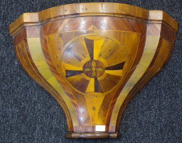 with marquetry inlay panels surrounded by cross banded borders, height 25cm approx -