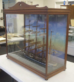 mounted in a display case 84cm wide, 35cm deep, 77cm high -