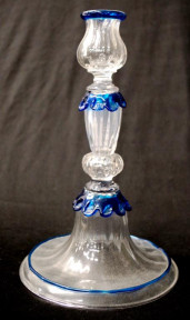 clear glass column with blue glass decoration, (height 29cm approx). -