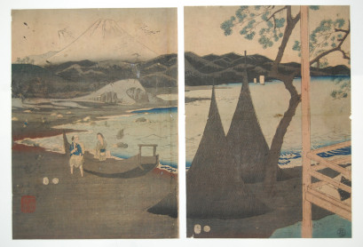 Lot Description:A Japanese Woodblock Diptych, Hiroshige I [1797-1858], the Prints with Seal Marks of the Carver & Publisher