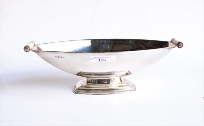 Lot #126 - Sterling silver Art Deco double handled bread bowl elongated oval shape