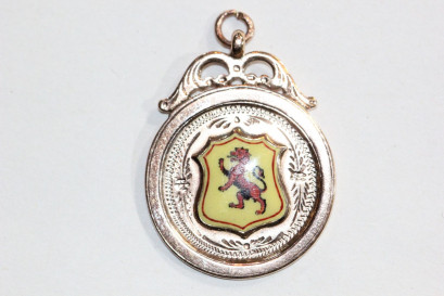 Lot Description:9ct gold enamel rampant lion fob pendant