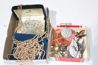 Lot Description:Two boxes of vintage jewellery incl. vintage pearls - some unstrung