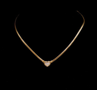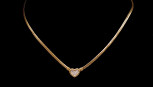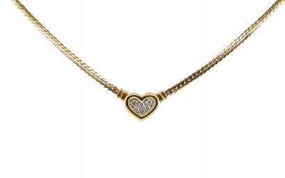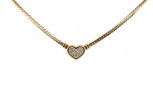 with flat curb links and attached heart pendant set with seven round brilliant cut diamonds. Approx 9 grams weight, length 45cm -