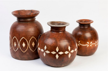Lot Description:A collection of three bone inlaid wooden vessels