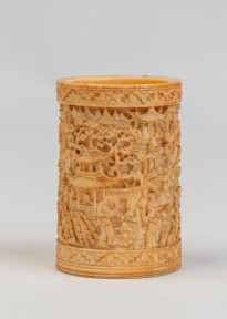 Lot Description:A small Chinese carved ivory brush pot, 19th century
