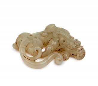 Lot Description:A pale celadon carved jade figure of a Chilong