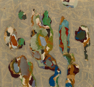 signed, titled, dated verso 'John Peart, Figures on a Ground, 1986' -