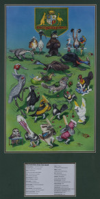 mounted together with a whimsical legend, framed & glazed (overall) 108 x 65cm.