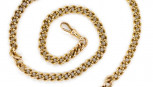 marked 15ct to clasps and touch marks. With one restored chain link. Approx weight 40 grams, length 42cm -