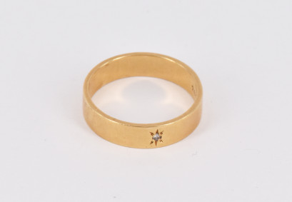 plain design, set with a single diamond of approx. 0.015ct, in 18ct yellow gold. Size O. Weight 4.1g. -