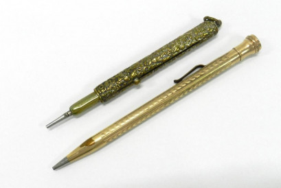 Lot #554 - An American Wahlesharp Gold Filled Telescopic Pencil & an Embossed Telescopic Pencil