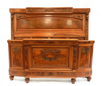 Lot Description:A French Maple & Inlay Burr Walnut Hand Carved Queen Bed, c.1910