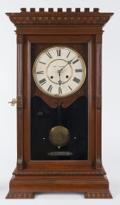 Lot Description:SETH THOMAS “Garfield” 8 day time and strike weight driven movement with damascened pendulum, circa 1883