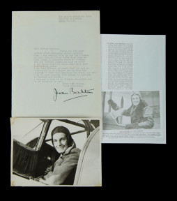 (13cm) Jean Batten at Darwin at the start of her attempt on the Australian England record 14.10.1937; & The London Aeroplane Club Hatfield Aerodrome 20.8.38, typed letter to Dear Father Manning signed boldly in black ink Jean Batten. -