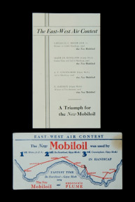 Blotter issued by Mobiloil & a four page booklet by Mobiloil. Seventeen planes started & fourteen finished. The winners were 1st Captain H.C. Miller - DH9 (handicap) 2nd Major De Havilland - Gypsy Moth (fastest time). -