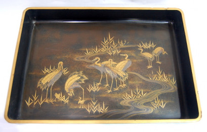 Lot Description:A Fine Japanese Kimono Storage Tray, Lacquer & Gilt with Red Crested Cranes, Meiji Period, 19th/20th Century