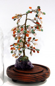 Lot Description:A Tall Semi-Precious Stone Tree on Copper & Brass Wires, under a Glass Dome & Wood Stand