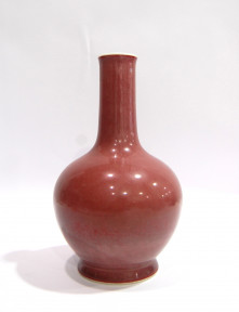 Lot Description:A Peachbloom Glazed Bottle Vase with a Rolled Mouth Rim, Qianlong Seal Mark