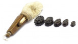 together with a carved wood tribal amulet; and Tibetan type silvered lid, (bowl missing). -