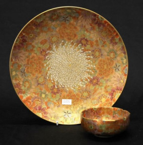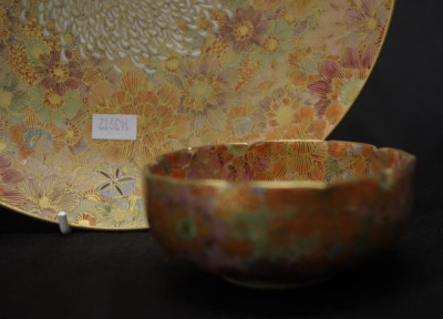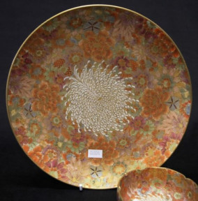 red character mark to base, (diameter 24cm approx); together with matching Satsuma bowl, marked to base, (diameter 9.5cm approx). -