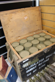 Lot Description:Wooden ammo crate containing 30 x grenade tube cases