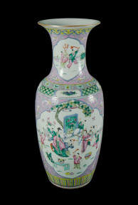 Famille rose enamelled decoration of figures in a garden. H58cm -
