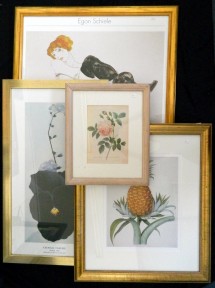 Lot Description:4 Framed prints including: Egon Schiele poster, Georgia O'Keefe, A Pineapple, Redoute Rose