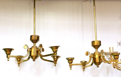 Lot Description:A Pair of Brass Four Branch Chandeliers
