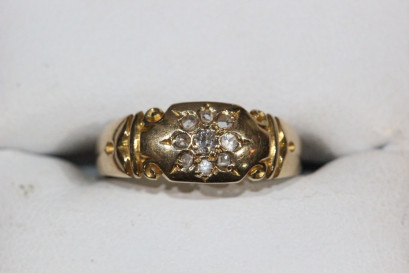 Lot Description:Antique 18ct yellow gold diamond and cubic zirconia dress ring