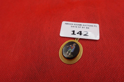 Lot #142 - Antique gold mounted figure decorated mosaic pendant