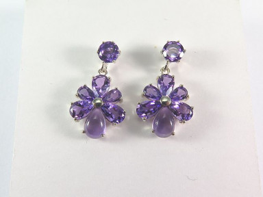 Lot Description:A Pair of Amethyst Cluster Drop Earrings