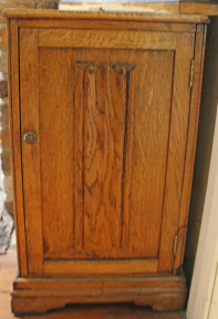 enclosed by a linen fold carved door. Width 35cm. -