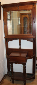 with bevelled glass, glove box on turned front legs. Width 80cm. -