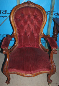 Lot Description:A Victorian Walnut Gentleman Open Arm Chair