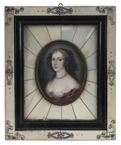 Lot Description:Miniature portrait of a lady in red dress, painted on ivory in ivory frame, 19th century