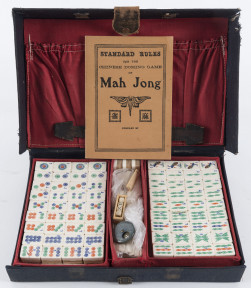 Lot Description:A Chinese Mah-Jong set in leather and card case with bone and bamboo tiles, early 20th century